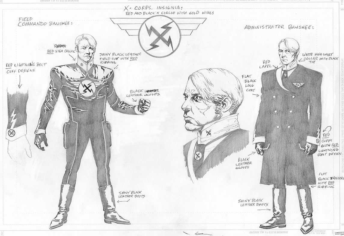 As recent e-mails have pointed out to me, I've continued to make the mistake of referring to the X-Corp uniforms as "Nazi-ish." My remarks have been based mainly upon the way the early drafts and first publicly released version of Uncanny X-Men #401's cover looked like, in which Banshee's costume carried an X in the center that seemed to have been transformed to look like the Nazi insignia. However, this is not the case now as obviously Marvel realized the errors of their way and changed the problem. Although I do not agree with the idea of Banshee or other Gen Xers being part of a military style organization, I will from this point on end my comparisons of the group to the Third Reich, unless future events in the pages of the comics force me to change my mind.
