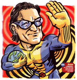 The newest issue of Entertainment Weekly (October 18, 2002) is the magazine's annual "Power Issue," and this year certain powerful individuals are being depicted as famous super-heroes. Surprisingly, Banshee wound up being one of them, as singer Bono was drawn to look like him. ![]()