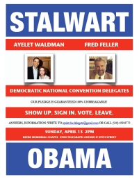 Waldman is sending out viral e-mails to get picked for a slot as an Obama delegate. An election is being held today at 3 p.m. PST.